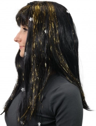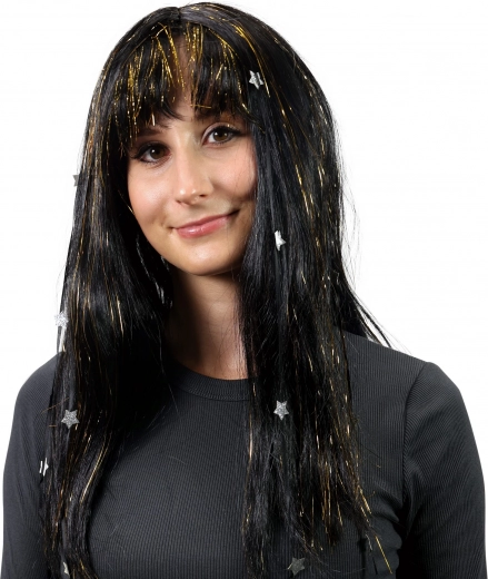 La parrucca aggiunge delle strisce dorate e stelle argento ai classici capelli neri, rendendola un ottimo accessorio per qualsiasi evento a tema.