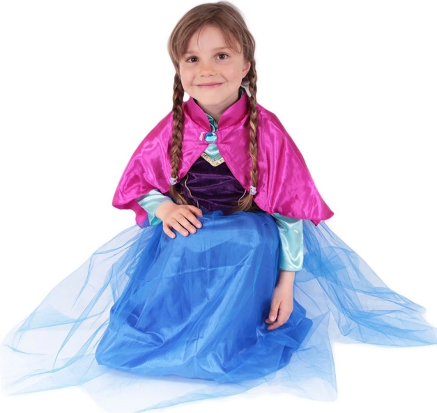 Questo costume alla moda trasforma ogni bambina in una coraggiosa principessa pronta per avventure invernali. Le ricche tonalità nero–blu con dettagli dorati e il mantello rosa in raso con fermaglio decorativo creano un look d’effetto per carnevale, feste di compleanno e travestimenti a casa.