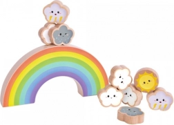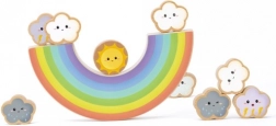 Questo arcobaleno in legno dai colori vivaci con sette archi funge da base oscillante su cui i bambini impilano nuvole e sole. Il gioco sviluppa pazienza, equilibrio e ragionamento logico, offrendo al contempo infinite varianti di costruzione. Grazie ai bordi levigati e al legno resistente è ideale per il gioco quotidiano.