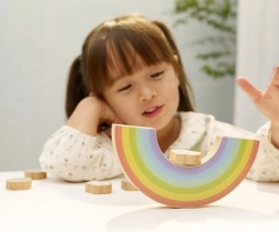 Bilanciare i pezzi sull’arcobaleno oscillante migliora la coordinazione mano-occhio, la pazienza e la precisione dei movimenti.