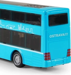 Moderno autobus a due piani di 20 cm di lunghezza in colore blu è un regalo ideale per i piccoli appassionati. Questo autobus turchese a inerzia offre porte apribili e un design realistico ispirato al trasporto di Ostrava.