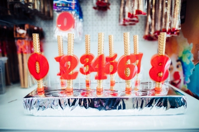 Numeri decorativi 0-9 per fontane di compleanno. Permettono di creare una fontana personalizzata corrispondente all'età del festeggiato. Perfetti per qualsiasi festa.