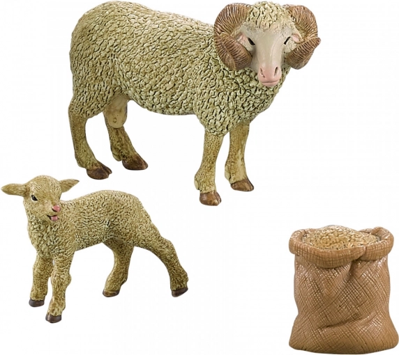 La figurina del montone in questo set ha una struttura del vello lavorata realisticamente e corna curate, ideale per scopi educativi o collezioni.