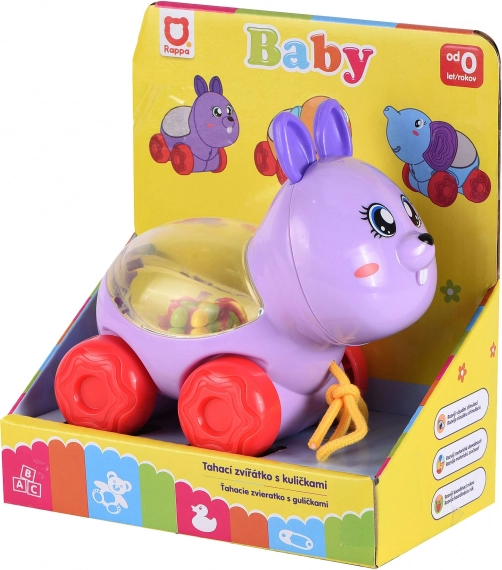 Questo allegro coniglietto trainabile è un ottimo compagno per i piccoli esploratori. Basta tirare il cordoncino e le palline colorate all'interno iniziano a saltare, motivando i bambini al movimento e sviluppando la loro coordinazione. La struttura robusta e le ruote scorrevoli garantiscono una marcia fluida su diverse superfici.