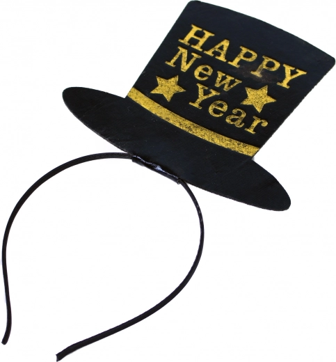 Fascia nera con cappellino, arricchita dalla scritta dorata HAPPY New Year: un accessorio sensazionale per la festa o il party di benvenuto al Nuovo Anno!
