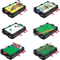 Divertiti con questo eccezionale set di giochi 7 in 1, che include calcio balilla, biliardo, carambola, hockey da tavolo, bersaglio, bowling e basket. Ideale per riunioni amichevoli o feste di famiglia.