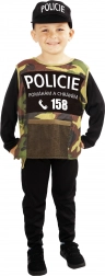 Trasforma il tuo bambino in un vero eroe con il costume da poliziotto, che comprende una tuta nera, un gilet mimetico con la scritta POLIZIA e un cappello. Ideale per bambini dai 4 ai 6 anni.