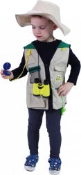Questo costume di carnevale trasforma ogni bambino in un intrepido esploratore. Il gilet leggero con tasche e il cappello senza laccetto si indossano facilmente, mentre i ricchi accessori stimolano la fantasia e sviluppano la curiosità durante il gioco in casa e all'aperto.