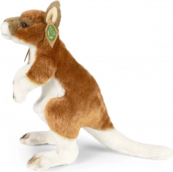 L’imbottitura eco‑friendly in bottiglie PET riciclate garantisce il rispetto dell’ambiente, mantenendo morbidezza e comfort a un livello eccellente. Il canguro sta in posizione eretta, con coda e orecchie tipiche, a sottolinearne la somiglianza fedele.