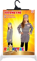 Rendi più allegro ogni carnevale con questo suggestivo costume da detenuta nel classico abbinamento bianco‑nero. Il set comprende una maglia lunga con orlo a zig‑zag caratteristico e un berretto con il numero 9999, che donano un aspetto autentico al travestimento. Adatto a bambine alte 105–116 cm (circa 4–6 anni).