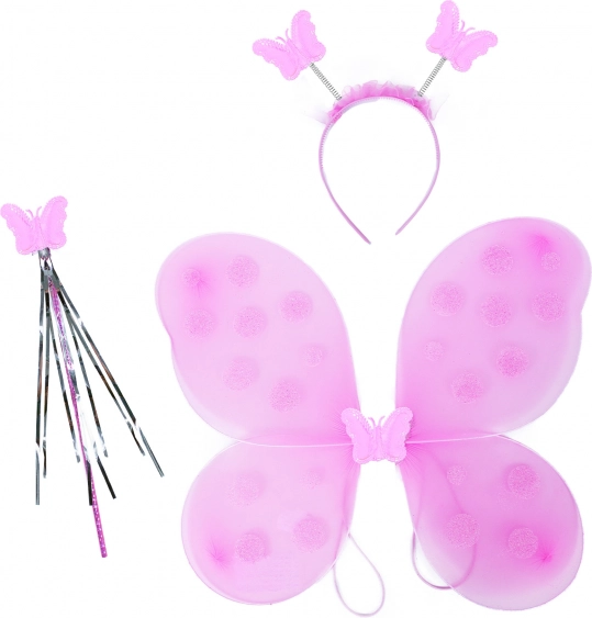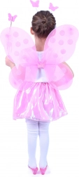 Ali rosa con motivo a pois che donano al costume un tocco magico; sono leggere e comode per i bambini.