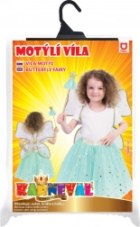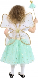Splendido set per piccole fate! Comprende una gonna di tulle verde con stampa di stelle dorate, ali coordinate e una bacchetta magica.