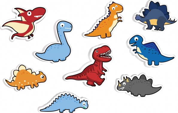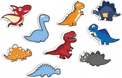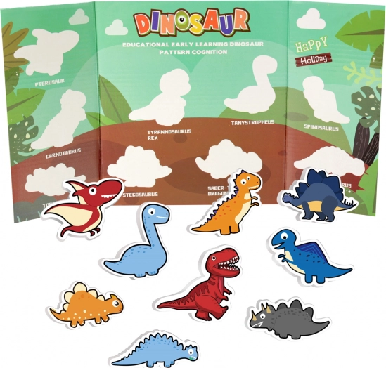 - Base, 9 sagome di dinosauri, 9 adesivi, numero corrispondente di magneti
