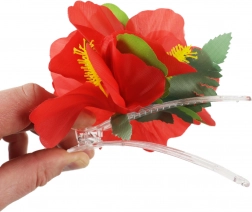 Questo fermaglio floreale per capelli porta l'esotico direttamente nel tuo stile. Con i suoi fiori rosso vivace e foglie verdi, ti trasformerai nella regina di ogni festa, sia che si tratti di una festa in spiaggia, un party hawaiano o una celebrazione a bordo piscina.
