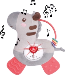 Il nostro amico di peluche porta gioia e stimola l'immaginazione dei vostri bambini. La zebra è progettata con luci colorate e effetti sonori, che si attivano quando viene premuta. Questo non solo divertirà il vostro bambino, ma sosterrà anche il suo sviluppo sensoriale.