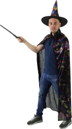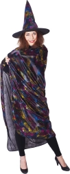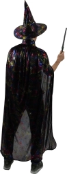 Questo costume meticolosamente realizzato è ideale per chiunque desideri godersi serate magiche con uno stile drammatico. Comprende uno splendido mantello con motivi ragnatela colorati e un cappello coordinato che conferisce all'intero outfit un'autentica atmosfera magica.
