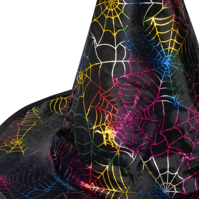 Ravviva il costume da strega dei bambini con questo cappello elegante dal motivo di ragnatela multicolore. Grazie alla forma appuntita e alla tesa larga, appare autentico e al tempo stesso giocoso.