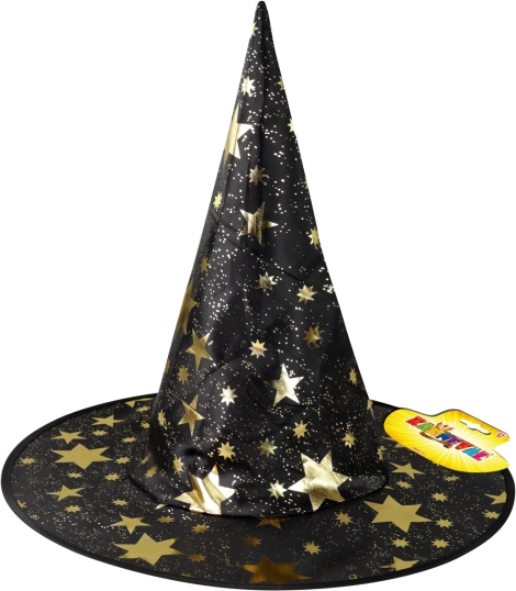 Il motivo appariscente di stelline dona al costume un aspetto affascinante e misterioso, inoltre il cappello è sufficientemente versatile da abbinarsi a diversi travestimenti. La facile manutenzione e la struttura resistente lo rendono una scelta pratica per un uso ripetuto.