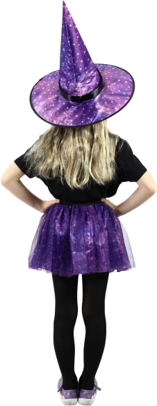 Con il costume da strega viola completato da decorazioni stellate, il tuo bambino brillerà a ogni festa.
