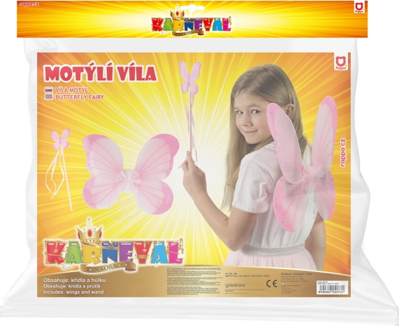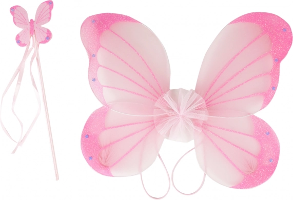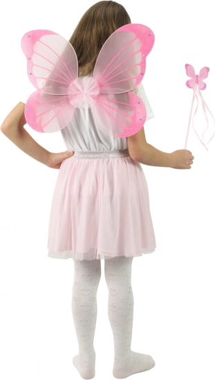 Le ali rosa e la bacchetta con motivo di farfalla sono ideali per carnevali, travestimenti e giochi da fata.