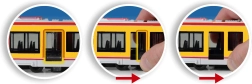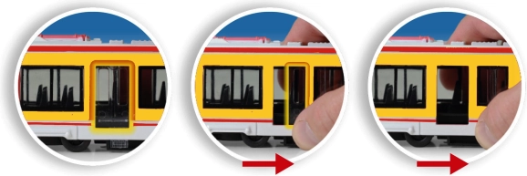 La pratica levetta sotto le porte consente l’apertura e la chiusura manuale: perfetta per simulare salita e discesa dei passeggeri. Con la dimensione di 20 cm si adatta comodamente alla mano del bambino e risalta anche in una collezione di modelli.