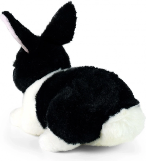 Il coniglietto bianco e nero sembra vivo e invita alle coccole grazie al materiale extra soffice.