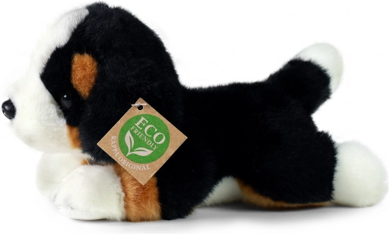 Adorabile cane da montagna bernese di peluche in posizione sdraiata, lungo 20 cm, che farà felici bambini e collezionisti. È cucito a mano in morbido peluche di alta qualità e vanta un aspetto realistico. Grazie all’imbottitura ECO‑FRIENDLY in bottiglie PET riciclate è rispettoso della natura e al contempo sicuro anche per i più piccoli.