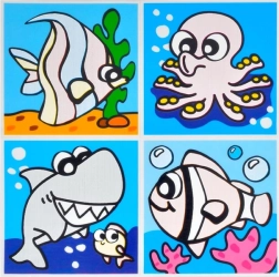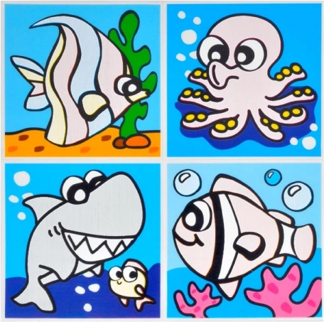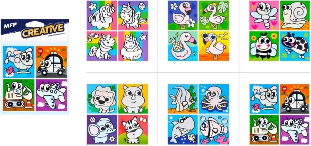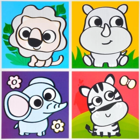 Nel pacchetto troverai una miscela di motivi, compresi animali e mezzi di trasporto. Ogni foglio contiene quattro immagini, perfettamente adatte per il bagno dei bambini.