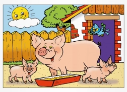 - 8 (gatto e gattini, pecora, cane, maialini, gallo e galline, cavallo e puledri, mucca con vitello, oca)