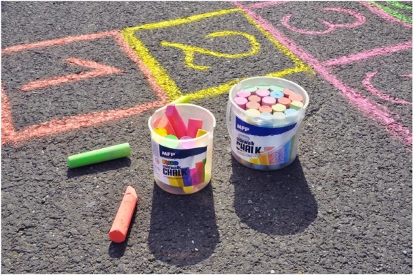 Il set è perfetto per le attività all’aperto su marciapiedi o campi da gioco e, dopo il divertimento, si lava facilmente con acqua. Composizione colori: 2× giallo, 2× verde, 4× arancione, 2× rosa, 2× viola.