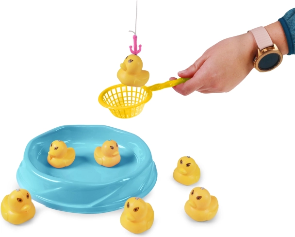 Questo gioco di pesca è la scelta ideale per i bambini che amano i giochi d’acqua e le sfide. Il set contiene tutto il necessario: una canna robusta con gancetto magnetico, un pratico laghetto in plastica e sei paperelle gialle con magneti. I bambini possono allenare precisione, pazienza e coordinazione mentre si divertono in modo sicuro e creativo.