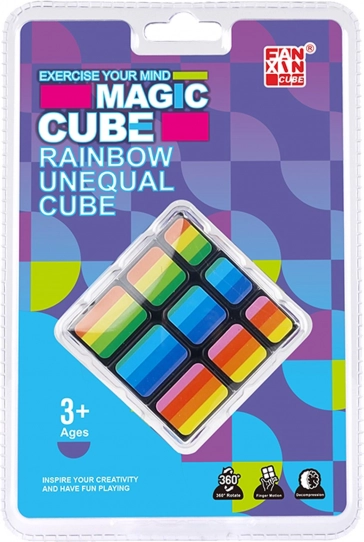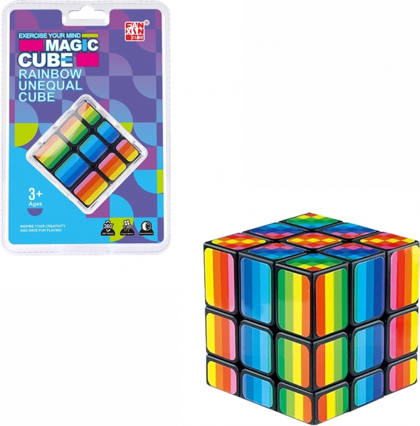 Questo cubo magico arcobaleno è progettato per lunghe ore di divertimento e riflessione. L'obiettivo è riorganizzare i singoli pezzi in modo che ogni lato dell'intero oggetto abbia lo stesso schema di colore: