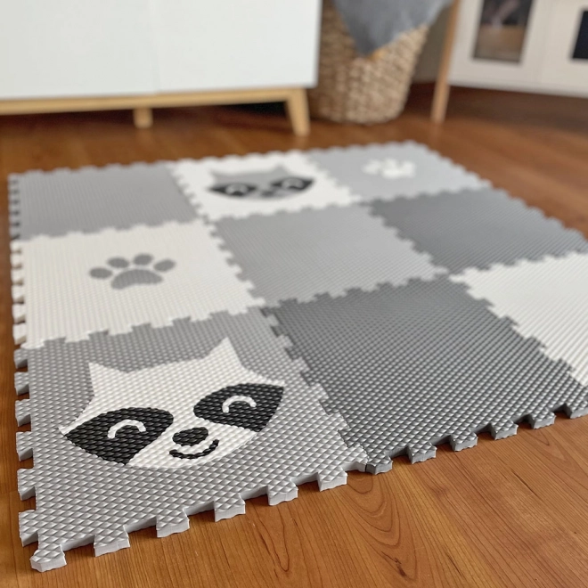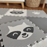 Questo tappetino da gioco con motivo di procione e impronte di zampette trasforma ogni stanza dei bambini in un luogo sicuro e morbido per giocare. Montaggio facile e semplice grazie ai bordi interbloccanti e al materiale resistente.