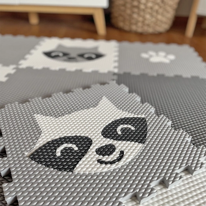 Il tappetino da gioco presenta motivi adorabili di procioni e zampette, che aggiungono un tocco di gioco all'ambiente di gioco.