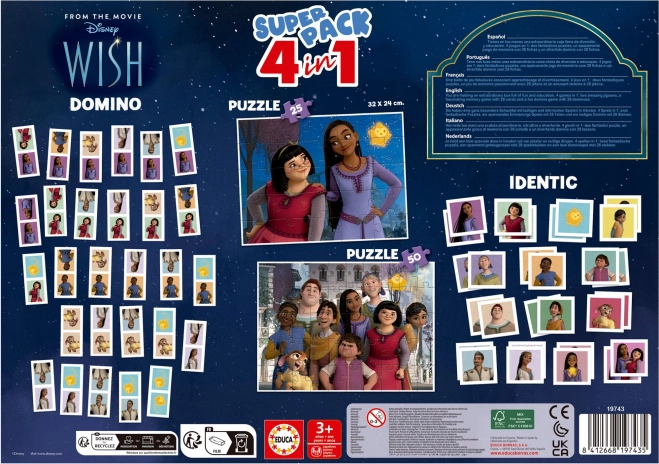 EDUCA Pacchetto di Giochi Desiderio 4 in 1 è la scelta ideale per i bambini che amano le diverse attività di gioco. Grazie alla varietà dei giochi, soddisfa ogni capriccio infantile e invita all'esplorazione e all'apprendimento.
