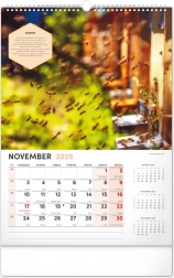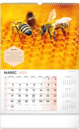 Calendario da parete ideale per apicoltori principianti ed esperti con fotografie mensili, proverbi e attività. Include il calendario slovacco con nomi, festività e altre informazioni importanti.