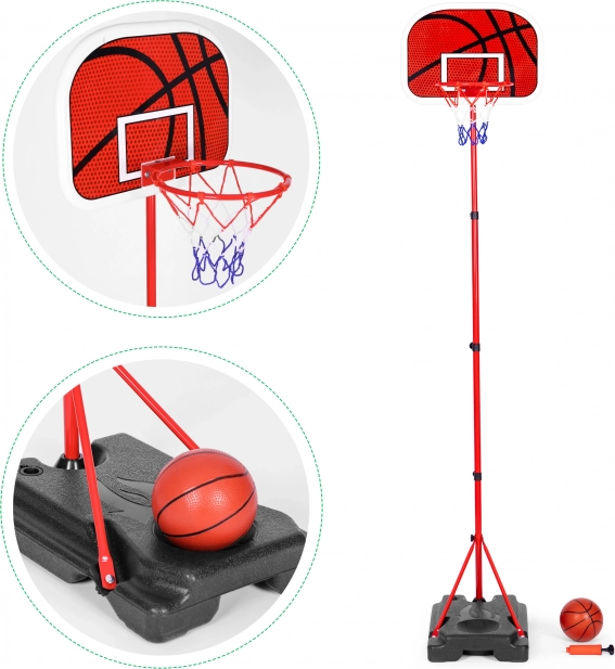 Il set include canestro, palla da basket e pompa, fornendo tutto il necessario per iniziare a giocare immediatamente.