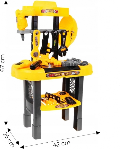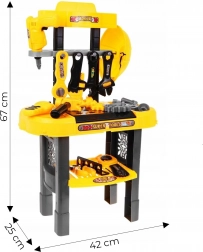 L'officina per bambini è progettata per imitare una postazione di lavoro professionale e offre gli strumenti essenziali per un gioco divertente e creativo.