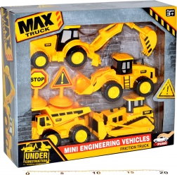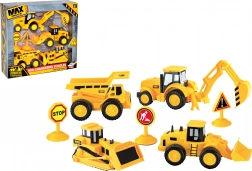 Set di macchine edili per piccoli appassionati di tecnologia edilizia. Include quattro diverse macchine tra cui bulldozer ed escavatori, che ampliano le possibilità di gioco.