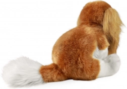 Lavorazione dettagliata della razza cavalier king charles spaniel con orecchie lunghe, occhi lucidi e coda soffice. Il morbido peluche invita a coccolarlo continuamente.