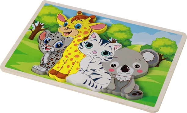 Un adorabile puzzle in legno con animaletti farà felice ogni piccolo esploratore. Include 8 pezzi con colori vivaci e illustrazioni allegre, che favoriscono lo sviluppo della motricità fine e della fantasia.
