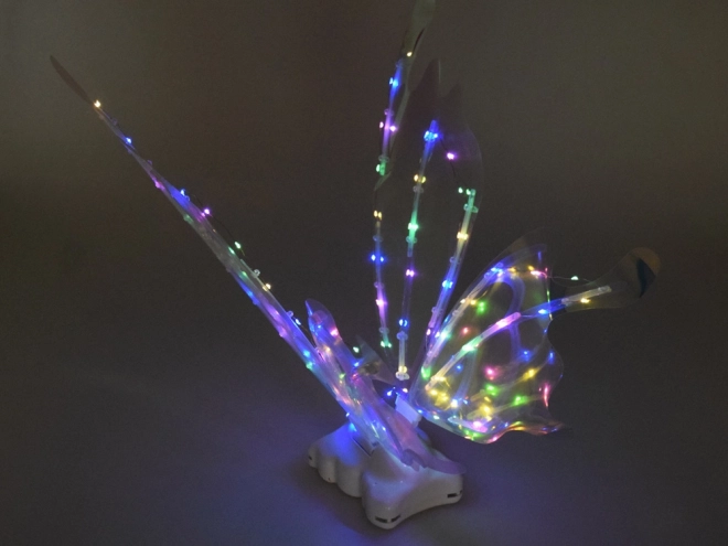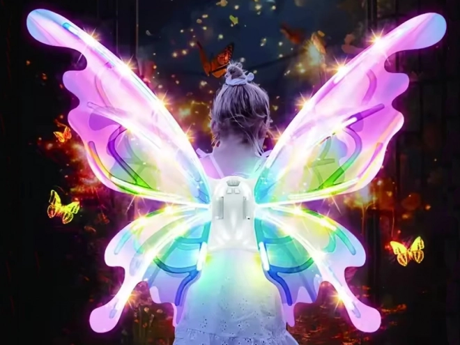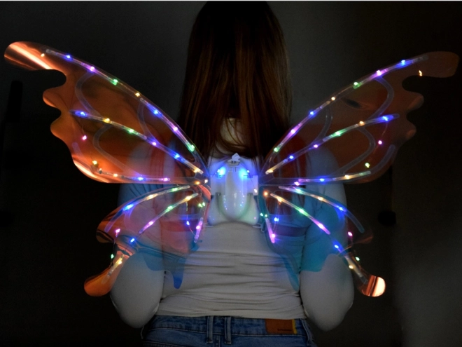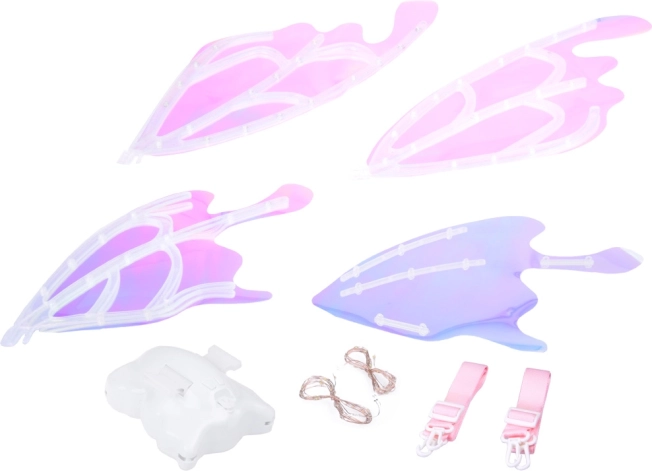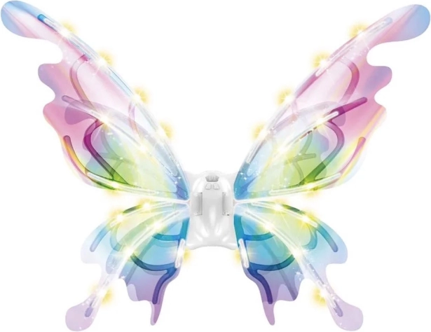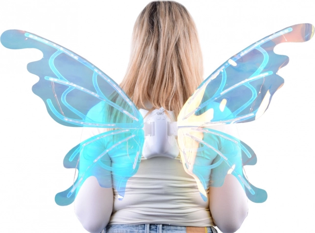 Queste magiche ali per bambini imitano grandi ali di farfalla che, a seconda dell’angolo della luce, brillano e cambiano colore in modo splendido. L’illuminazione LED integrata e il movimento meccanico delle ali creano uno spettacolo scenografico che incanterà ogni piccola fata, elfo o farfallina.