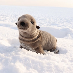 La foca di peluche ha dettagli e colori realistici che ricordano una vera foca.