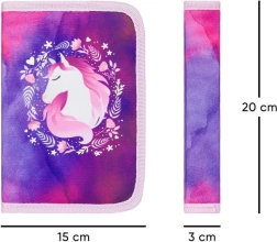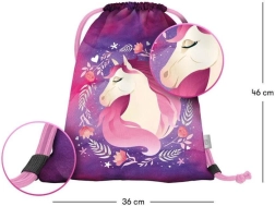 Il set include anche un assortimento completo di articoli scolastici, come astuccio, cartelle portadocumenti e scatola per la merenda. Tutte le parti hanno un design coordinato con il tema cavallo e sono pratiche per l'uso quotidiano.