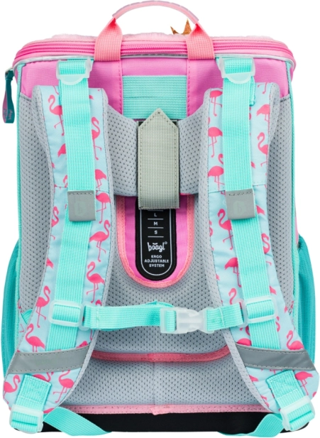 Il set scolastico Zippy Fenicottero è la scelta ideale per bambini e genitori che cercano una combinazione di qualità, comfort e stile. La cartella ergonomica è dotata del sistema di schienale regolabile ERGO ADJUSTABLE SYSTEM, che consente una regolazione ottimale delle cinghie in base all'altezza del bambino. Il corpo della cartella è realizzato in materiale resistente all'acqua, che mantiene la forma stabile e pesa solo 1.100 g.