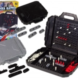 Valigetta apribile con due griglie per posizionare le navi e registrare i colpi/mancati. Tutto rimane insieme e nulla si perde – ideale a casa e in viaggio.