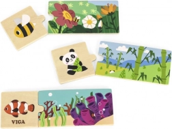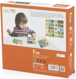 Questi puzzle logici del marchio VIGA sono uno strumento ideale per lo sviluppo del pensiero logico e dell'immaginazione dei bambini. Il gioco consiste nell'assemblare correttamente 20 pezzi colorati che insieme creano immagini di animali e il loro habitat naturale. Ogni pezzo è accuratamente realizzato in legno, ricoperto da vernice atossica, garantendo una lunga durata e sicurezza per i bambini.