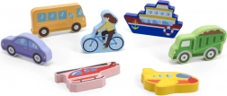 I puzzle in legno VIGA con mezzi di trasporto sono la scelta ideale per un gioco divertente e al contempo educativo. I bambini devono abbinare i pezzi colorati dei mezzi di trasporto ai rispettivi posti sulla tavola, esercitando precisione nei movimenti e coordinazione. I pezzi singoli possono anche essere utilizzati come figure separate per altri giochi.