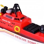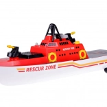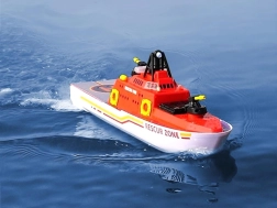 La combinazione di colori rossi, bianchi e gialli insieme a dettagli come cannoni d'acqua e antenne contribuisce all'aspetto autentico della barca di salvataggio.