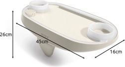 Progettata per la massima praticità e sicurezza: i 2 portabicchieri mantengono tazze, bicchieri e bottiglie senza rischio di rovesciamento, mentre la superficie per tablet o smartphone consente di guardare i contenuti preferiti nel massimo comfort. L’alimentazione è garantita da 2 batterie CR2032 (incluse), quindi non servono cavi né installazioni.